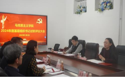 在会议中,三名教师党支部书记和一名学生党支部 书记依次就 2024 年度的支部工作进行了述职汇报, 内 容涵盖了各自在履职尽责方面的情况、当前存在的问题 以及未来的工作计划。2024 年,马克思主义学院党委始终以习近平新时代中国特色社会主义思想为指导,紧紧 围绕学院的中心任务,不断提升基层党组织的政治和组织能力,积极推动党建工作与学院核心业务的深度融合。 在立足本职、服务社会、实现龙江振兴的过程中,学院 充分发挥了党建的示范引领作用,为学校 “双一流”建 设的发展做出了积极贡献。同时,各支部也坦诚地指出了自身存在的不足之处,例如支部活动的参与度不高、 党建工作的创新性有待加强等。对此,学院党委认真听 取了各支部的建议,并就这些问题进行了深入的交流和 讨论, 以进一步完善和优化学院的党建工作。