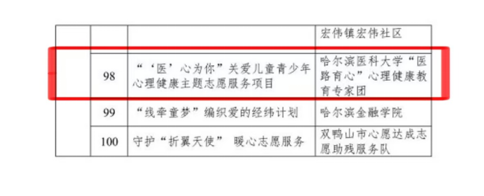 长期以来,学院始终高度重视青年志愿服务工作,把志愿服务作为大学生思想政治教育的重要内容。该团队成员在周艳娟教授的带领下,面向校内外青少年学生积极开展心理健康公益宣教服务,坚持多年潜心青少年心理疾病的现状普查和影响因素的调查研究,为广大患有焦虑、抑郁等心理问题的大学生开展公益心理辅导及团体辅导,为广大教师和学生举办大型公益讲座。团队从2023年开始承担黑龙江省委宣传部“‘医’心为你”关爱儿童青少年心理健康主题志愿服务项目,该项目被学习强国专题报道,受到社会各界的广泛好评。下一步学院将以此为契机,进一步将志愿服务品牌推向质量化、专业化,并将吸收更多的师生参加心理志愿服务,持续推动我院志愿服务工作纵深发展,为和谐校园平安校园建设做出更大的贡献。