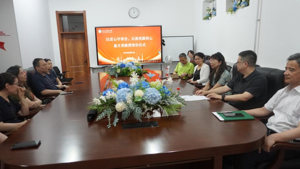 为致敬崔月英教授深耕教育的奉献精神,6月24日下午,马克思主义学院在一楼会议室举行“以匠心守讲台,以热忱践初心”主题荣休仪式。学院党委书记朱研主持活动,全体教师共同见证这一温暖时刻。