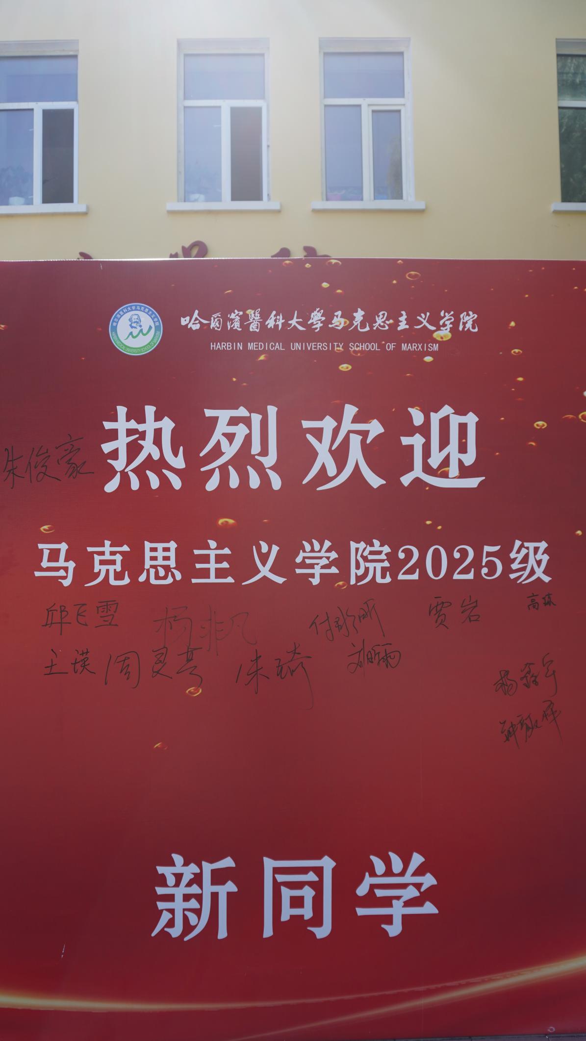 “同学你好,欢迎来到马院!”志愿者们以满腔热忱接过新生的行囊,细致入微地指引他们完成报到流程,每一步都充满温情。学院特别设置的迎新签名墙成为当天最受欢迎的打卡点。新生们满怀激动,纷纷执笔,在印有欢迎语的签名板上郑重地留下自己的姓名,每一笔都承载着对未来的期许。一个个签名汇聚在一起,构成了一幅青春洋溢的画卷,象征着新生们正式成为马院大家庭的一员。