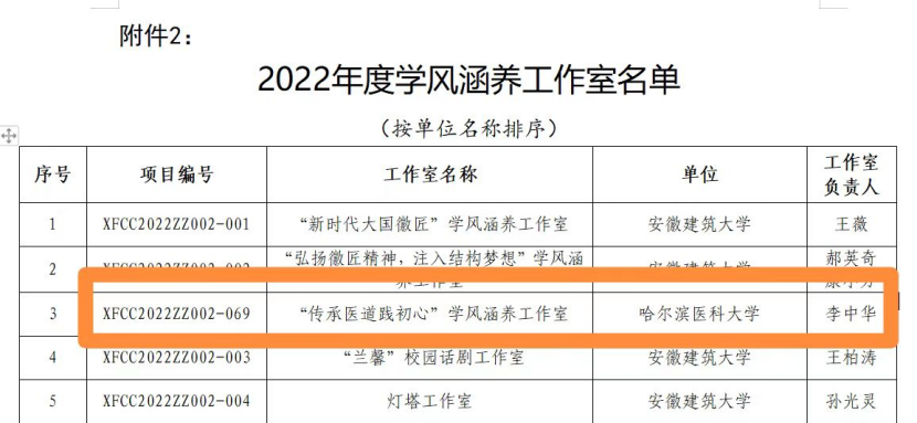 6月24日,中国科协宣传文化部公布了2022年度学风传承行动项目立项名单,经资格审核、专家评审等程序,马克思主义学院“李中华名师工作室”申请的“医”路有我系列精品创作和“传承医道践初心”学风涵养工作室分别入选学风传承行动项目——精品资助项目和学风涵养工作室。近三年来,“李中华名师工作室”已获批中国科协学风资助类项目四项,立项率为100%。