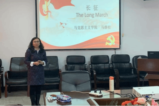 随后,中国近现代史纲要教研室马静松教授为全院作了一场题为“长征”的专题讲座,正式拉开了马克思主义学院庆祝“建党一百周年系列活动”的序幕。讲座中,马静松以“重走长征路”为切入点,主要介绍了“长征的历史背景”“长征的历史进程”“长征的历史意义”以及“长征的历史启示”四大方面内容,立足于我党在长征中发生的真实故事,生动地再现了中国共产党红一方面军在湘江战役和大渡河战役中的英勇事迹。马静松指出,伟大的长征精神作为中国共产党人的红色基因和精神族谱的重要组成部分,是鼓舞我们全体中国人民攻坚克难,不断走向胜利的强大精神动力,作为马克思主义学院的教师应当大力弘扬并践行伟大的长征精神,始终坚定理想信念,在工作和生活中培养不怕吃苦不怕牺牲的精神,树立为人民服务为学生服务的思想意识,在具体实践中不断锤炼自己的党性修养。