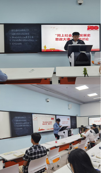 5月24日,毛泽东思想和中国特色社会主义理论体系概论教研室教师在课堂教学中。组织了“同上社会主义发展史思政大课”主题讨论活动,五位同学走上讲台,围绕社会主义光辉发展历史,讨论了在新时代如何更好地坚持 “四个自信”,发言同学通过社会主义发展的经验和教训两方面展开精彩讨论,逻辑严谨、认识深刻。