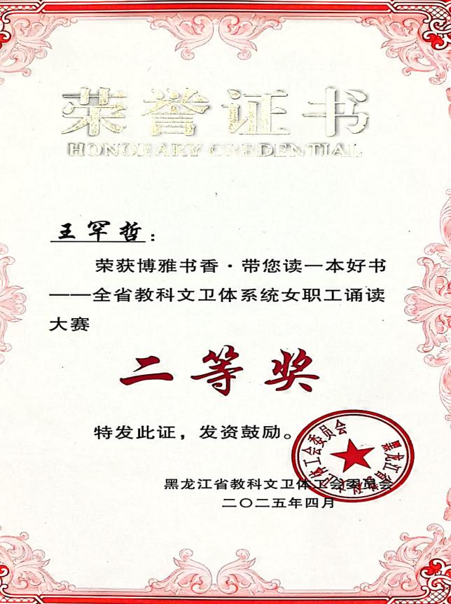 4月11日上午,由省总工会主办,省教科文卫体工会承办的迎庆中华全国总工会成立100周年“博雅书香・带您读一本好书”全省教科文卫体系统女职工诵读活动决赛在黑龙江省工会事业发展中心圆满落幕。