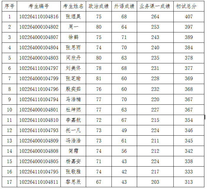 笔试及专家组面试成绩均计入总成绩(初试总成绩+复试总成绩)。学校将根据外国语笔试成绩、专业课笔试成绩、外国语面试成绩、专业知识面试成绩和初试总成绩,以及专业招生计划来确定拟录取考生名单。思想政治素质和品德考核以笔试形式进行。复试成绩不合格或思想政治素质和品德考核不合格的考生不予录取。