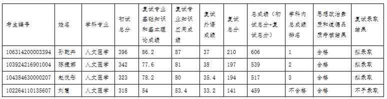 根据学校复试方案,人文社会科学学院人文医学专业(代码:1001J1)缺额数:3人。