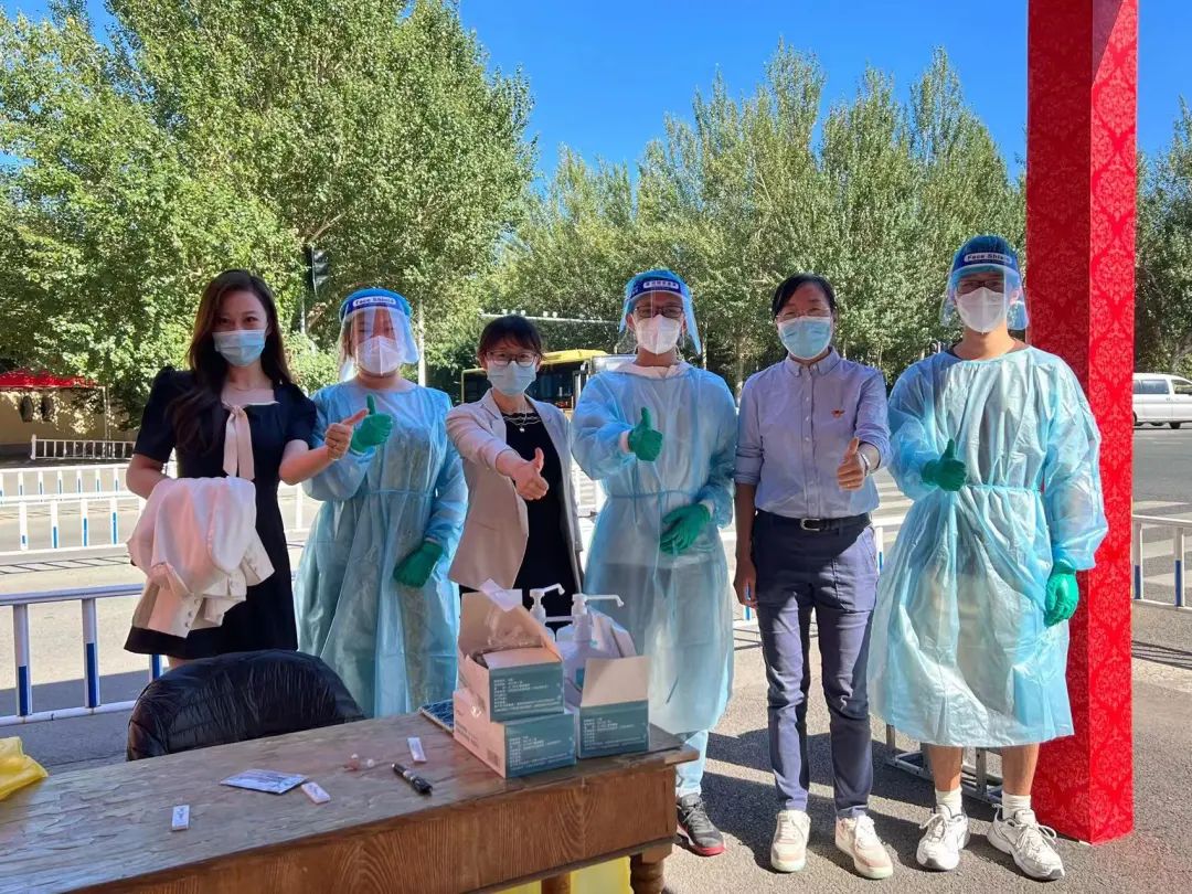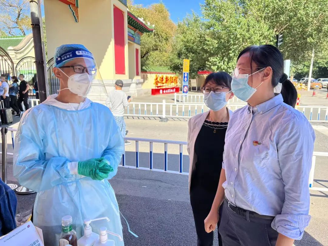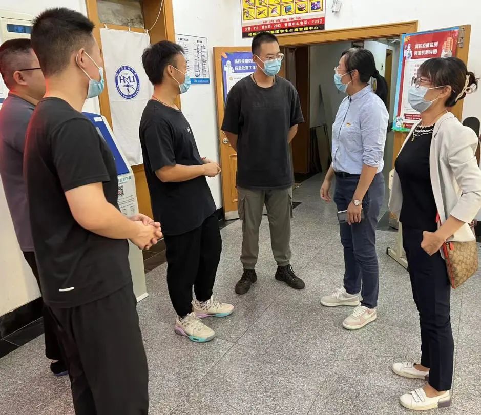 人文学院张赫楠、朱虹、张晓奥老师在校园迎接新生,并安排学生进行核酸检测。待学生进住公寓后,老师们进入宿舍楼了解学生情况与需求,与同学们保持密切沟通,关注疫情动态、上报统计数据、传递学院温暖、答疑解惑释忧。人文学院的研究生同学们也主动请缨成为学生志愿者,展现了人文学子的责任与担当。