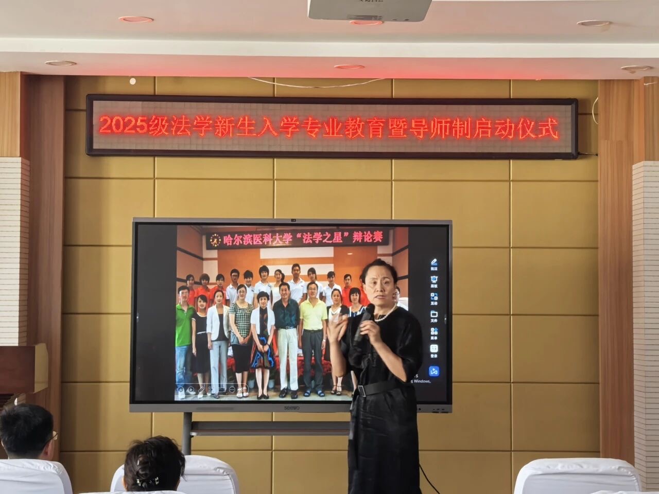 作为新生入学教育的关键环节,9月2日中午,学院隆重举行2025级法学专业介绍会。学院党委书记黄永柏教授代表院领导班子致辞,向新生表示热烈欢迎并提出殷切期望。法学教研室主任王萍教授、副主任姜鑫教授系统介绍了专业教学计划、课程结构、师资力量与发展前景,尤其突出医学法学交叉融合的办学特色,帮助新生树立专业认知、激发学术兴趣。2015级法学专业学生穆英男作为优秀毕业生代表发言,2024级冯佳睿同学作为在校生代表分享学习心得,2025级韩湘桐同学代表新生发言。