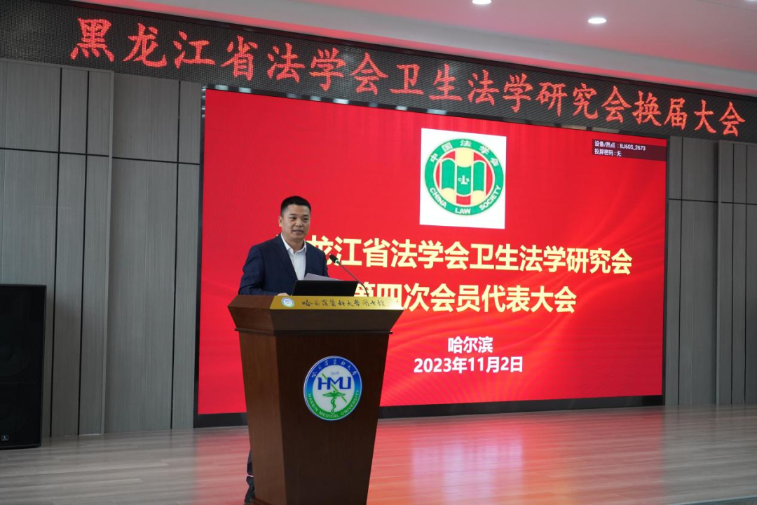 黑龙江省法学会党组成员、秘书长郭大勇在致辞中肯定了黑龙江省法学会卫生法学研究会自成立以来深入学习贯彻习近平法治思想,立足全面贯彻党的二十大提出的健康中国建设要求,充分体现人民健康优先发展的战略导向,依托ac米兰官网中文网站雄厚的医学背景,通过聚焦卫生健康领域的热点和难点问题,深入开展理论研究和实践探索,积极组织专家就敏感法律问题与伦理事件建言献策,广泛开展法律诊所服务、医药卫生法治宣传活动,为卫生法治建设贡献了龙江智慧。他特别强调在新冠疫情期间,卫生法学研究会《依法防控疫情后可能出现的突出问题》、《关于依法防控新型冠状病毒感染的肺炎疫情的建议》等一系列研究成果,被中国法学会“要报”采纳,并得到中央领导同志的重要批示,也为省委省政府新冠疫情防控提供了法治方面的决策依据。希望以此次换届为契机,切实把卫生法学理论研究与服务保障龙江振兴发展和现代化强省建设有机结合,重点围绕充分发挥公共卫生法治保障作用,后疫情时代卫生健康事业面临的法治挑战和考验等问题,加强卫生法治理论与实践研究,为法治黑龙江建设谏新言献好策,为健康龙江建设提供坚实的理论支撑。