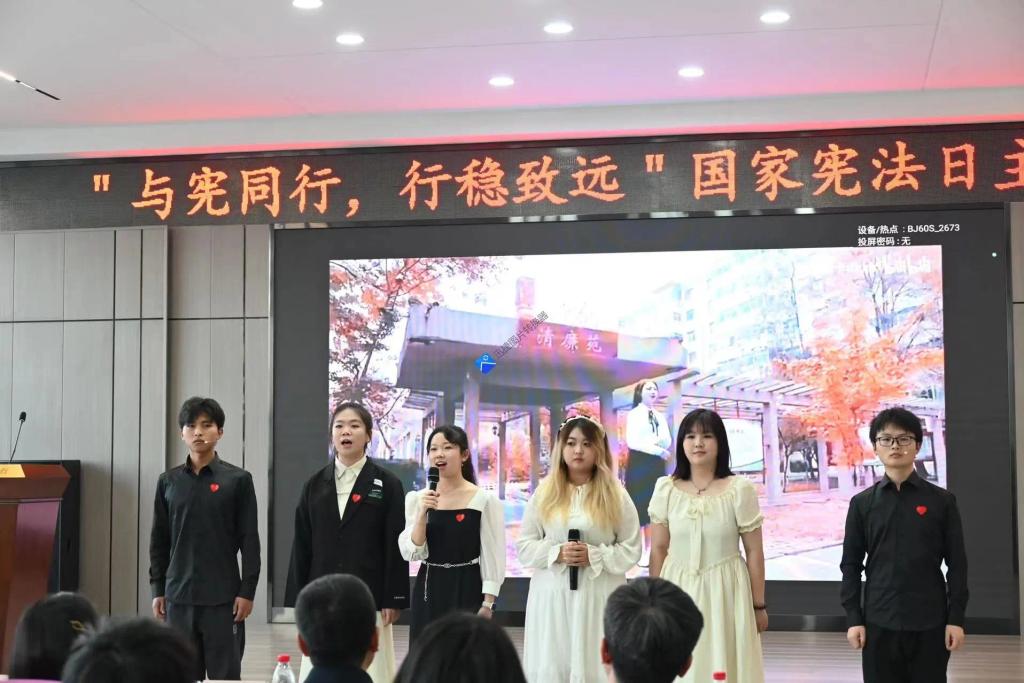 ac米兰官网中文网站法学专业自2002年成立以来,已度过了22个春秋。时光转瞬,岁月即逝,法学学子从在医大初见,到相逢相知、一路同行。师生是“一朝沐杏雨,一生念师恩”,同窗是“希君生羽翼,一化北冥鱼”,大学四年的陪伴温暖人心,而一旦注入了情感,就有了沉甸甸的分量。宪法伴学生成长,宪法为我们护航,与宪同行,方能行稳致远,人文学院六名法学专业学生为大家倾情演唱《相逢是首歌》《宪法伴我们成长》。