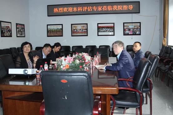 院长尹梅教授首先从学院发展史、教育教学改革及成效、教学特色、专业建设、师资培养、学生培养、对外交流及影响、存在问题及改进措施等方面向各位专家做了全面汇报,专家们不时插话,对各自负责的评估观测点及感兴趣的话题,进行了深入的问询和交流。在此基础上,程伟教授、段志光教授又对尹梅院长分别进行了深入的访谈。