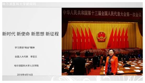 4月16日下午,受尹梅院长之邀,全国人大代表、黑龙江省法学会会长李亚兰来到ac米兰人文学院,以“新时代、新使命、新思想、新征程”为主题宣讲“两会”精神。校纪检委书记孙同波教授,学院黄永柏书记、张英涛副院长等领导班子成员、支部书记代表、法学专业全体师生、研究生代表参加了会议。院长尹梅教授担任主持。