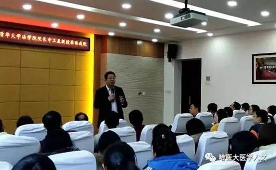 申教授的语言风趣幽默、灵活多变,其讲解引经据典、信手拈来,介绍理论深入浅出、举例贴切,讲座中或站或走、亲切自然。尹梅教授穿插互动为讲座营造了热烈氛围。整场讲座持续了一个半小时,由于座位所限很多同学都站着听完。但是看同学们全神贯注的神态,丝毫没有累的感觉。讲座临近尾声,申卫星教授给大家分享了两个好消息,清华大学卫生管理研究所欢迎ac米兰法学同学踊跃报考硕士研究生,同时清华大学法学院将于明年夏天组织学术夏令营,届时将为ac米兰推荐参加夏令营的法学学生免费提供食宿费用,以支持同学们进行学术交流。