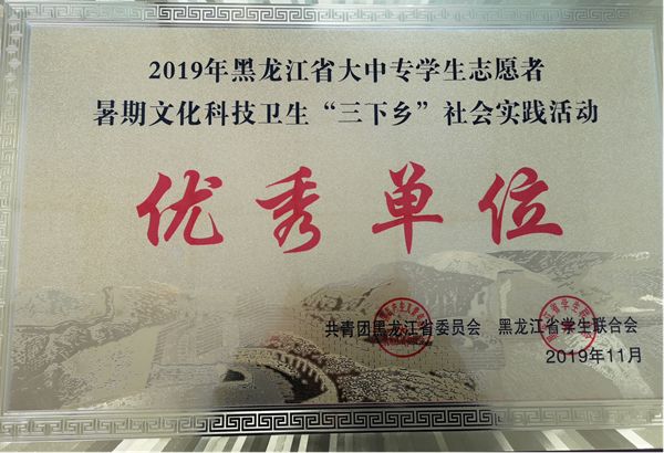 11月29日,由共青团黑龙江省委员会、黑龙江省学生联合会共同举办的2019年黑龙江省大中专学生志愿者暑期文化科技卫生“三下乡”实践活动表彰大会在黑龙江大学主楼报告厅举行,ac米兰官网中文网站团委荣获优秀单位奖,我院“爱与希望”社会实践团队被评为全省“优秀团队”,我院张晓奥老师荣获全省社会实践“优秀个人”荣誉称号。