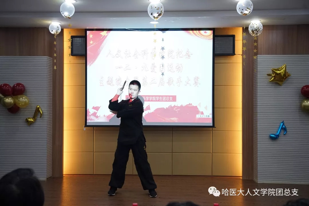 为了纪念一二·九爱国运动83周年,展现我院青年学生爱国爱党团结向上的精神面貌,人文社会科学学院于12月7日举办了“纪念一二·九爱国运动主题晚会暨第二届歌手大赛”。