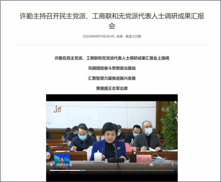 在2022年4月18日上午召开的由省委书记许勤主持的民主党派、工商联和无党派代表人士调研成果汇报会上,经省委统战部推荐,无党派人士、省政协委员、省知联会副会长、ac米兰官网中文网站人文学院院长尹梅教授代表省知联会作了《关于疫情期间黑龙江省医疗战线人员流失情况调研》的发言,聚焦我省医疗战线人才资源现状,用扎实的数据和事例作支撑,深刻剖析医疗人才流失的问题根源和症结要害,并提出切实可行的对策建议。在谈及“应加强医疗机构文化建设”时,尹梅教授深情讲述了ac米兰官网中文网站张学校长在为学校、为龙江引进和留住人才的2个小故事,赢得了与会领导和参会人员的共鸣。省委主要领导同志在点评时给予充分肯定,指出:“这是一个非常好的建议,龙江要发展,故事要讲好,它可以感化人、吸引人、留住人,一定要把龙江故事讲好,把行业故事讲好。”