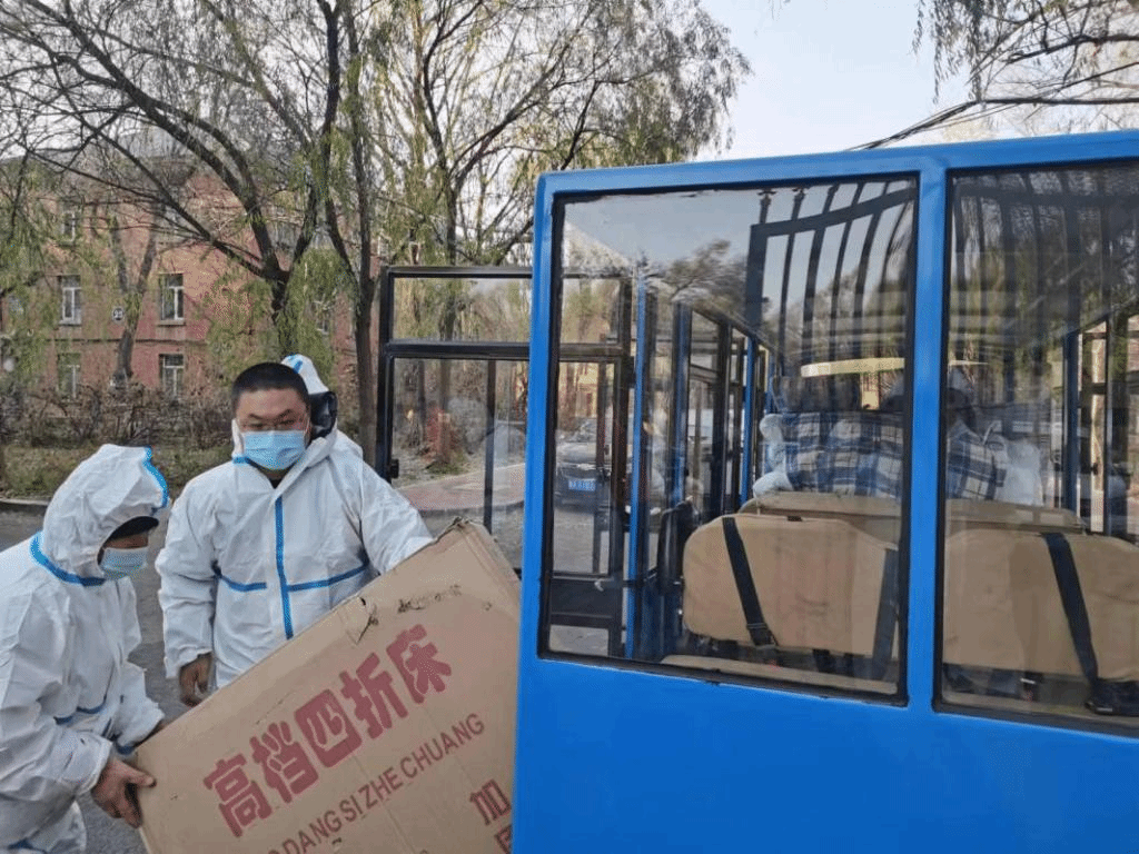 第一,迅速筹备搬运防疫物资。本次疫情共计接收折叠床、被褥、一次性防护服、防护口罩、面罩、鞋套、手套、75%酒精、医用垃圾袋等各类防疫物资上千件。冒着初冬瑟瑟寒风,摆渡车往来穿梭,不知多少次地搬运物资,我身上防护服的内里满是汗水。