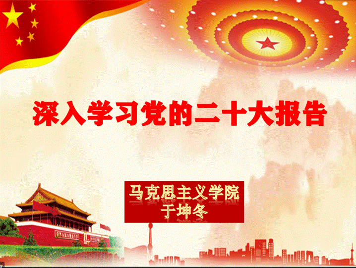 马克思主义学院于坤冬副教授以《深入学习党的二十大报告》为题,从实践成就、理论渊源、任务使命、行动纲领、党的建设和精神传承六大方面宣讲二十大精神。