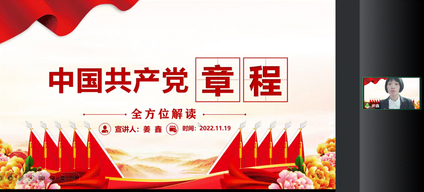 人文学院第二党支部书记姜鑫教授以《中国共产党章程》为题,结合党的二十大对党章的修改进行讲解。