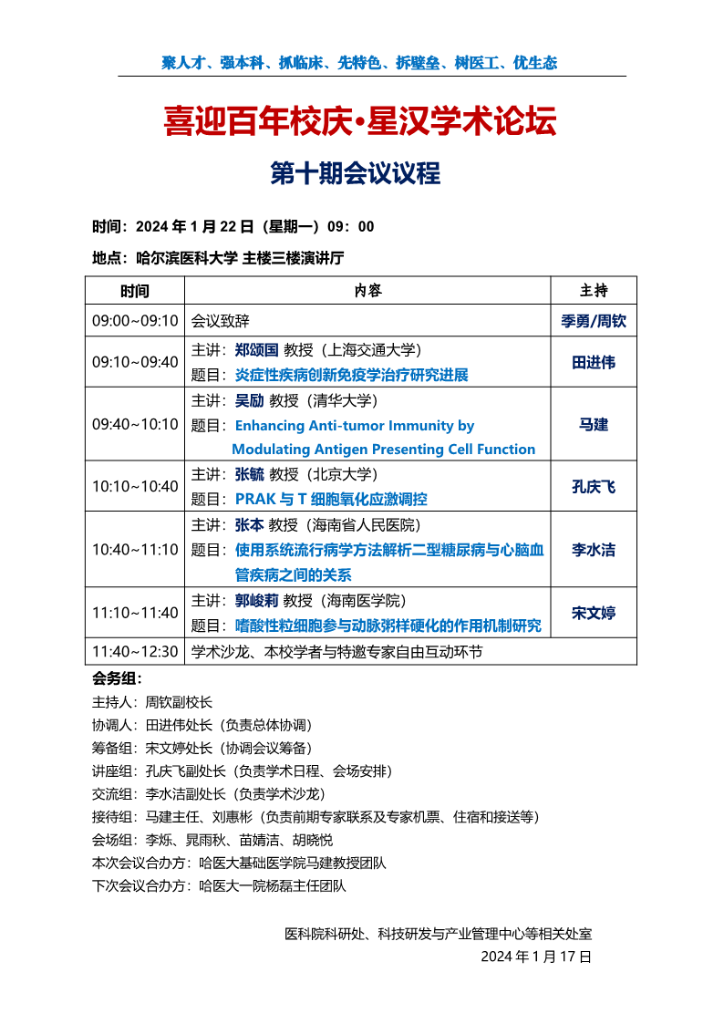 星汉学术论坛第十期会议日程