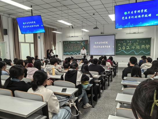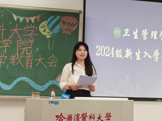 本次新生入学教育工作由卫生管理学院学生工作办公室副主任严丹老师主持,学院党委刘振华书记、学院郝艳华院长、焦明丽副院长、康正副院长、公共卫生学院副处级辅导员王国华、卫生管理学院学术骨干教师和2024级新生参加了此次入学教育大会。