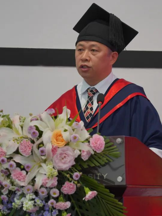 金剑同学作为2023届毕业生代表回顾了研究生阶段的学习经历,与老师、同学朝夕相处的点点滴滴,表示毕业生们定不会辜负校院领导和老师的期望,毕业后将在各自的工作岗位上尽心竭力,为学校增光添彩,为推动健康事业发展做出贡献。刘国祥教授作为教师代表发言,对毕业生表达了衷心的祝愿,并希望奔赴各自岗位的同学们能够倾其所学,不辱使命,为健康中国建设勇立潮头,贡献卓越!最后,毕业典礼在欢快的旋律中结束。与会嘉宾、老师和毕业生在主楼前集体合影留念。