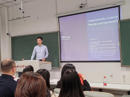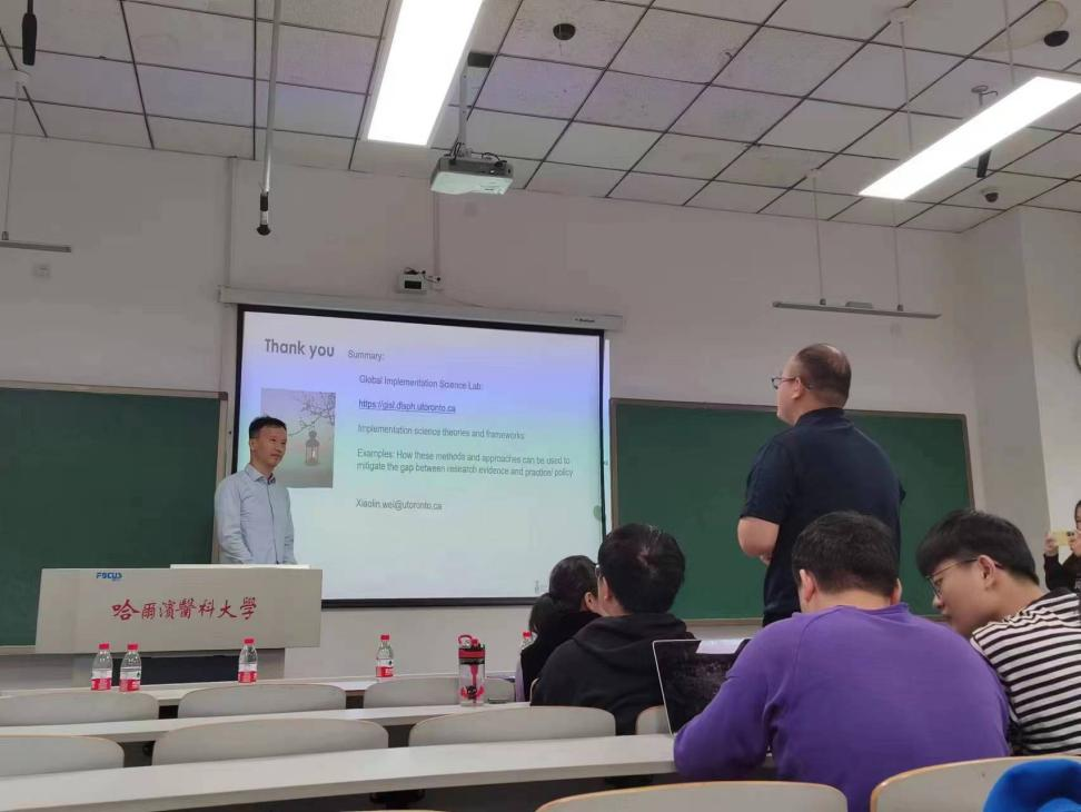 在讲座中,魏晓林教授首先对自己在多伦多大学的经历作了介绍,之后从干预措施的实施、临床试验的应用、信息技术的协助等方面系统阐述了实施性科学研究方法。魏晓林教授以在西藏实施的肺结核患者服药依从性干预项目的案例,和我们分享了实施性科学研究的设计原理和实施过程,列举了干预过程中面临的困难及解决方法,总结了干预项目最终所取得的成果。