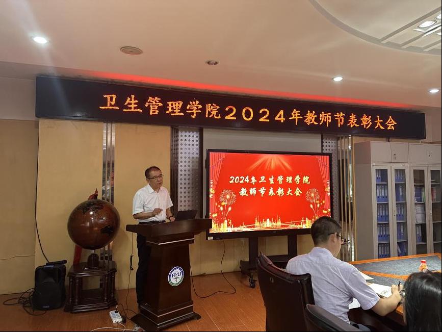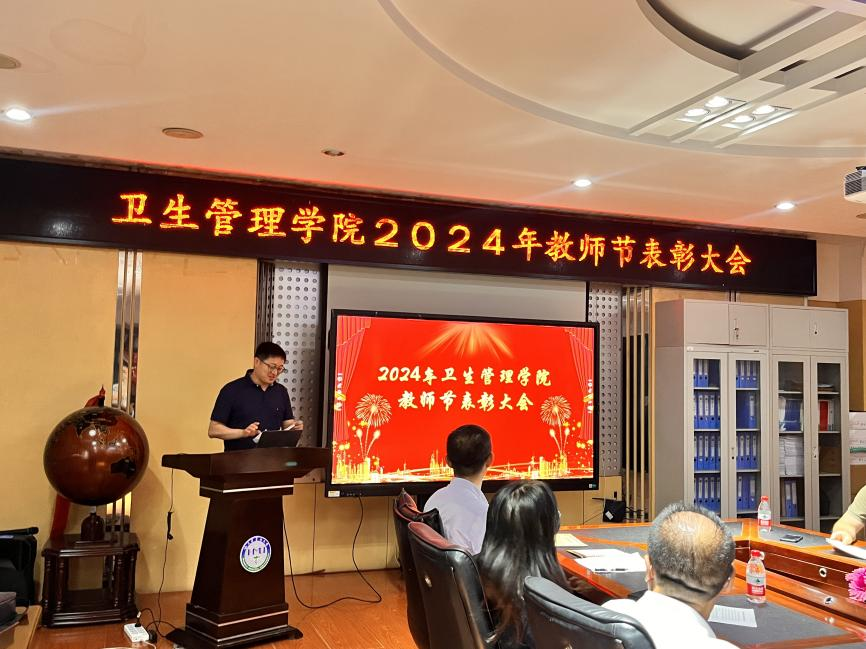 丹桂飘香,金菊绽放,我们满怀喜悦的心情迎来了第 40 个教师节。为增强广大教师教书育人的荣誉感和责任感,落实好立德树人根本任务,ac米兰官网中文网站卫生管理学院于9月9日14 时在 B303 多功能厅召开教师节表彰大会,表彰在教学科研、学生指导、教学管理等方面做出突出贡献的教师。本次大会由卫生管理学院副院长康正主持。