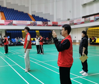比赛开始前,他们早早地来到场地,进行现场布置和准备工作。比赛开始后,他们全神贯注地投入服务中。志愿者们忙碌的身影随处可见。他们分设在各赛事项目的第一线,配合裁判员老师为各项目的现场裁定、数据记录、计时等工作保驾护航。他们身处幕后,却扮演着本场运动会至关重要的角色,确保比赛公平公正地进行;他们为老师们递水擦汗,送去关怀与温暖;他们大声呐喊助威,让赛场气氛更加热烈。