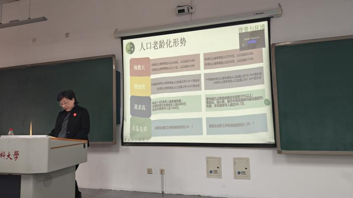 最后,王晓昕处长分享了她所带领的团队在医养结合实践中所做的努力。团队广泛开展科普工作,重视实践探索与人才队伍建设。讲座结束后,同学们积极参与互动,现场学术氛围十分浓厚,进一步促进了学术思想的碰撞和交流。