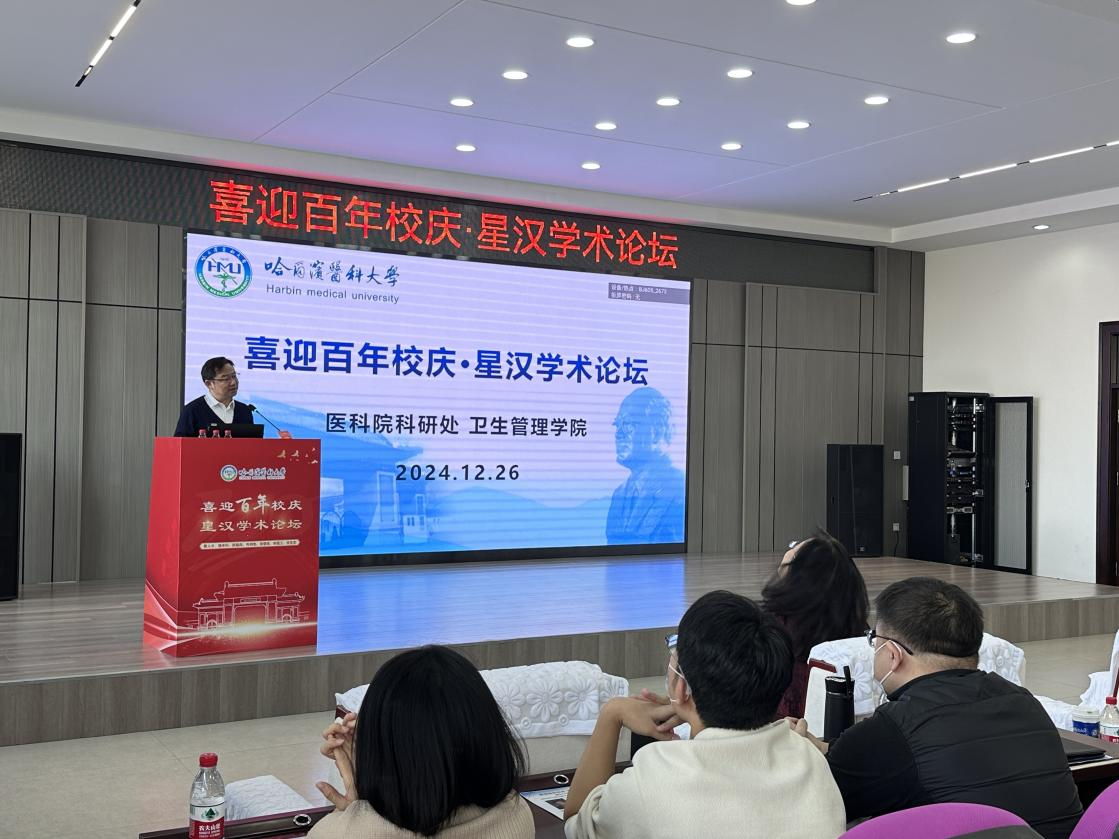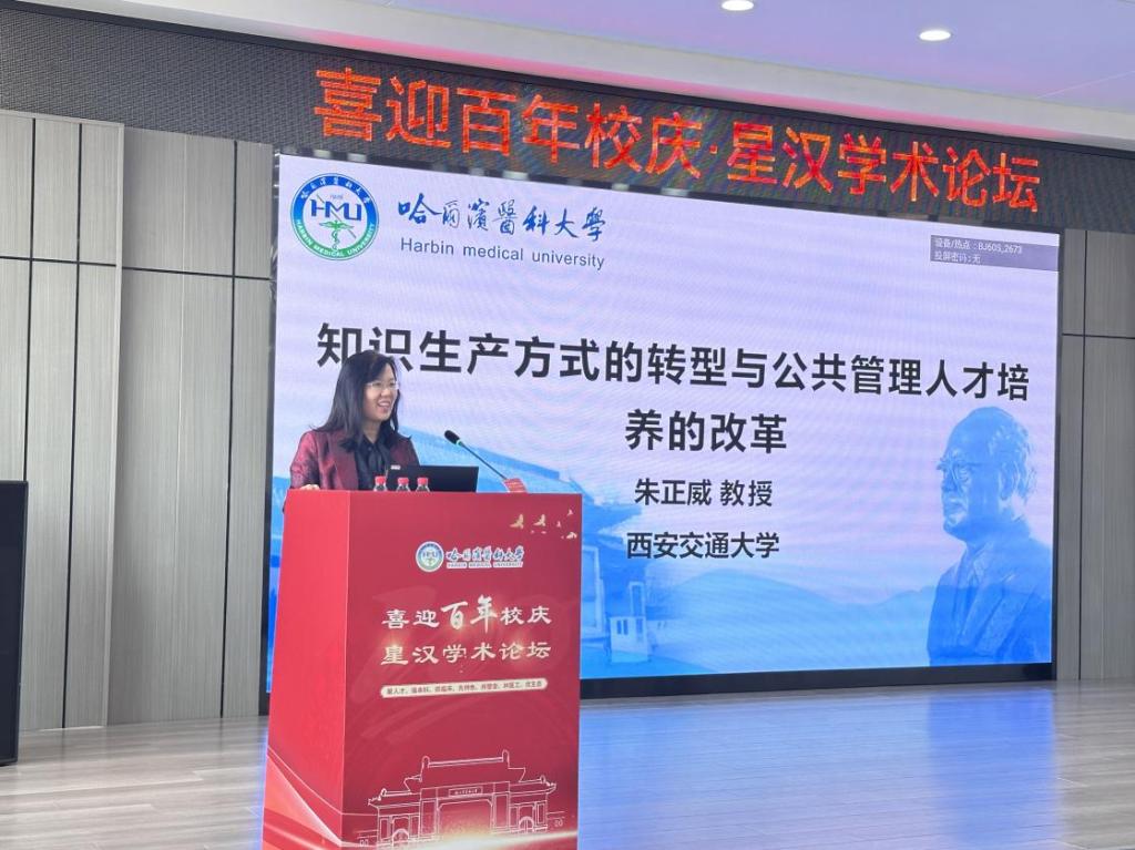 12月26日上午,由黑龙江省医学科学院科研处主办、ac米兰官网中文网站卫生管理学院承办的“喜迎百年校庆·星汉学术论坛”系列第三十八期学术报告会在图书馆5楼星联报告厅隆重举行。本次论坛邀请到西安交通大学公共政策与管理学院朱正威教授作为报告嘉宾,进行“知识生产方式的转型与公共管理人才培养的改革”主题演讲。学术论坛开始前ac米兰官网中文网站校长季勇教授亲切接见了朱正威教授,与朱教授就管理学科发展与管理人才培养进行了深入交流,卫生管理学院院长郝艳华、副院长焦明丽陪同会见。