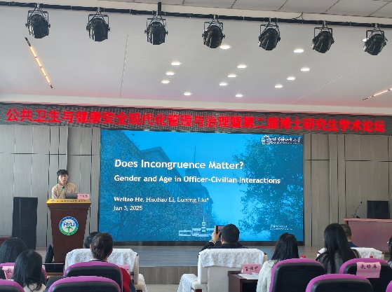 研究生学术交流与报告环节由ac米兰官网中文网站卫生管理学院副院长康正教授主持,刘欢副教授、张歆教授、高蕾副教授、高力军教授和张淑娥老师为分主持。哈尔滨工业大学博士生何潍涛深入探讨性别与年龄因素在官民互动中的影响机制。哈尔滨工程大学博士生王敏提出引入无人机技术,对优化海上应急资源配置和提升管理效能具有重要意义。哈尔滨理工大学博士生刘宇鑫详细分析了人工智能技术驱动下平台生态系统的变革路径与创新模式。我院留学生Bobkov Artem以俄罗斯医疗实践为例,展示数字技术在优化医疗可及性方面的成效与挑战。我院博士生曹译尹、博士生刘俊萍、博士生刘玮、硕士生张琳、硕士生闫泽煜、本科生费雨萌和本科生齐岚岚分别从基于特定价值量表深入剖析癌症患者与普通人群健康偏好差异、植物性饮食模式对老年人睡眠质量的影响、我国心血管疾病患者社区健康传播服务利用偏好研究、老年人数字素养与心理健康关系研究、传染病流行风险的识别与防控研究和世界各国老年退休年龄政策借鉴及启示几个方面进行了深入探讨。