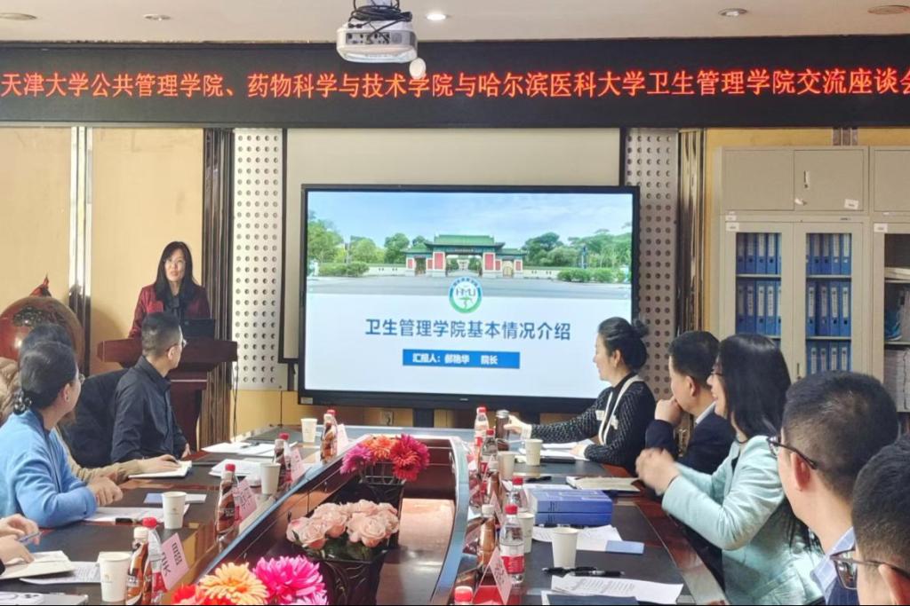 近日,天津大学公共管理学院院长傅利平教授、药物科学与技术学院党委书记吴晶教授等一行5人到我院交流座谈。学院郝艳华院长、吴群红教授、焦明丽副院长、康正副院长、刘国祥教授等参加座谈,会议由焦明丽副院长主持。