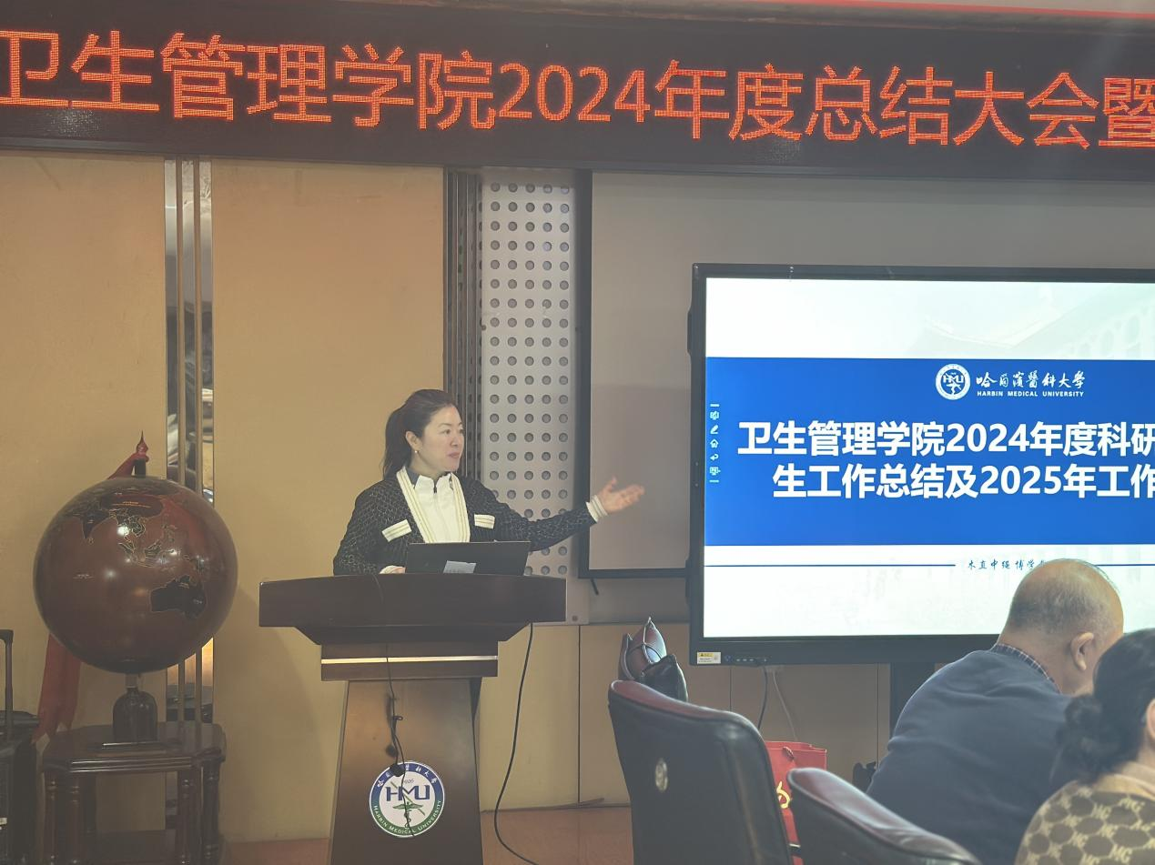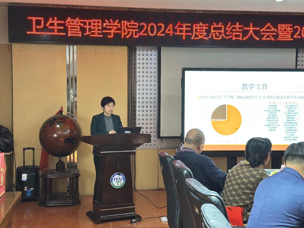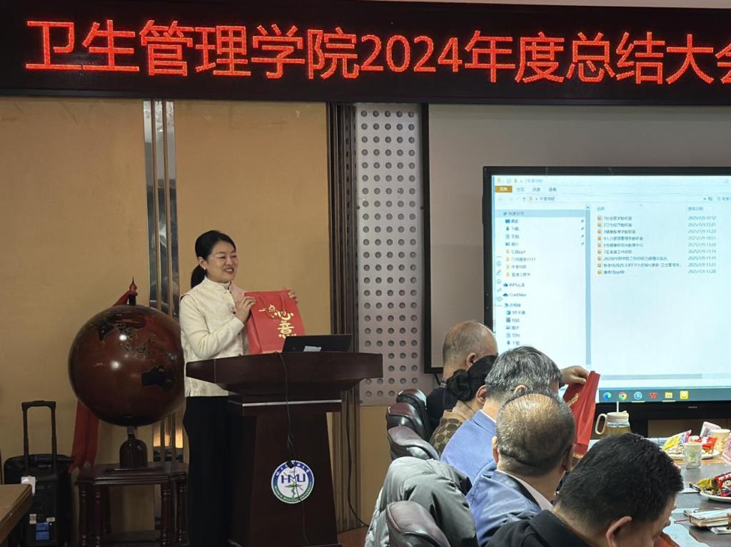 卫生管理学院院长郝艳华对学院进行了总结和展望,根据学校第二十一次党代会精神,提出鼓励青年教师的激励政策使青年教师备受鼓舞,同时,对学院2025年的发展提出了殷切的期望,希望全体教职工能够继续发扬团结协作、锐意进取的精神,共同推动学院在新的一年工作中取得更加喜人的成绩,再上新台阶。
