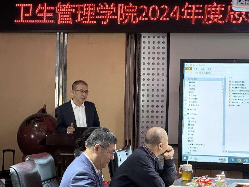 学院党委书记刘振华对学院全体教职工的贡献表示感谢,对2024年所取得的系列标志性成果表示充分肯定,表扬了教育教学成果,学院特色课程等重要工作内容。希望卫生管理学院全体教师在新的一年里坚守初心,砥砺前行,共同谱写2025年新的篇章。