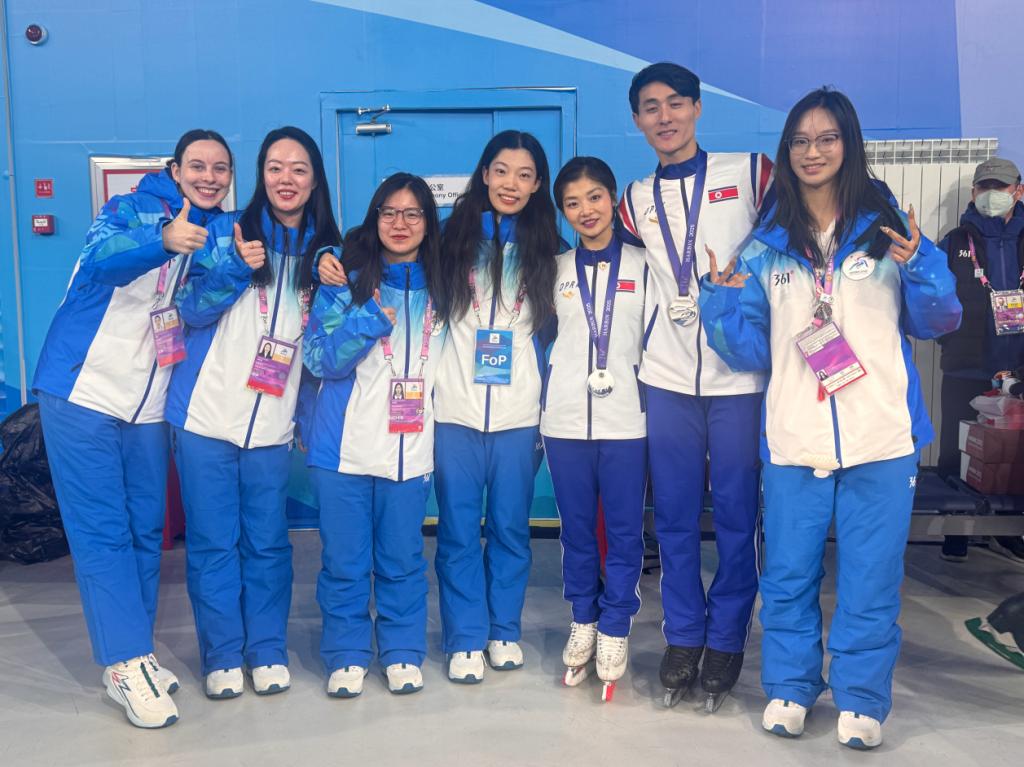 丽娜(左2)与乌兹别克斯坦花样滑冰运动员合影