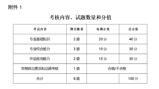 (三)考试分数为100分,具体见附件1。其中,思想政治素质和品德考核成绩不计入总成绩,思想品德考核不合格者不予录取。