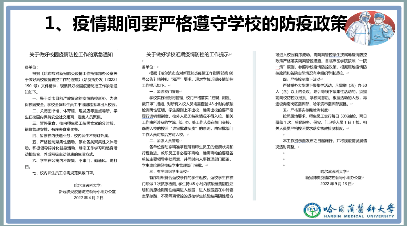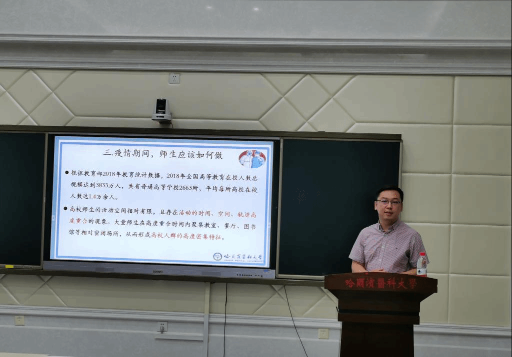 王声远副教授结合自己的实际工作经验,根据当前疫情防控形势,为大家作了一场内容丰富、指导性强的专题培训。他从什么是奥密克戎、密切接触者的判定原则、疫情期间师生应该如何做、疫情防控的启示等四个方面对疫情防控知识做了详细介绍,还着重从疫情防控风险及采取的相应措施、进出学校管理、做好个人防护、严防输入等方面对开学后的疫情防控工作进行了专业指导。
