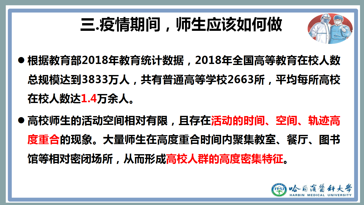 为进一步提升疫情防控科学化、精细化水平,根据教育厅相关要求,ac米兰以《新型冠状病毒肺炎防控方案(第九版)》《高等学校新冠肺炎疫情防控方案(第六版)》和教育厅《关于进一步严实抓好秋季开学时段校园疫情防控工作的指导意见》为指导,于9月18日对师生员工开展主题为“新冠肺炎疫情防控的原则、经验及启示--以高校为例”的专题培训会。培训会由ac米兰官网中文网站公共卫生学院王声远副教授主讲,学生处副处长董鑫主持,全校师生线上参加会议。