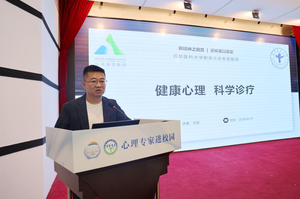 仲夏六月,生机绽放。6月19日,中国心理卫生协会“心理专家进校园”活动走进ac米兰,在学校主楼演讲厅开展心理健康讲座,与莘莘学子面对面交流。中国心理卫生协会理事长、首都医科大学附属北京安定医院院长王刚教授和中国心理卫生协会副理事长、天津医科大学钱明教授分别主讲。学校党委常委、中国疾病预防控制中心地方病控制中心党委书记袁重胜、副校长许超千出席讲座。讲座由学工部部长徐娟主持。