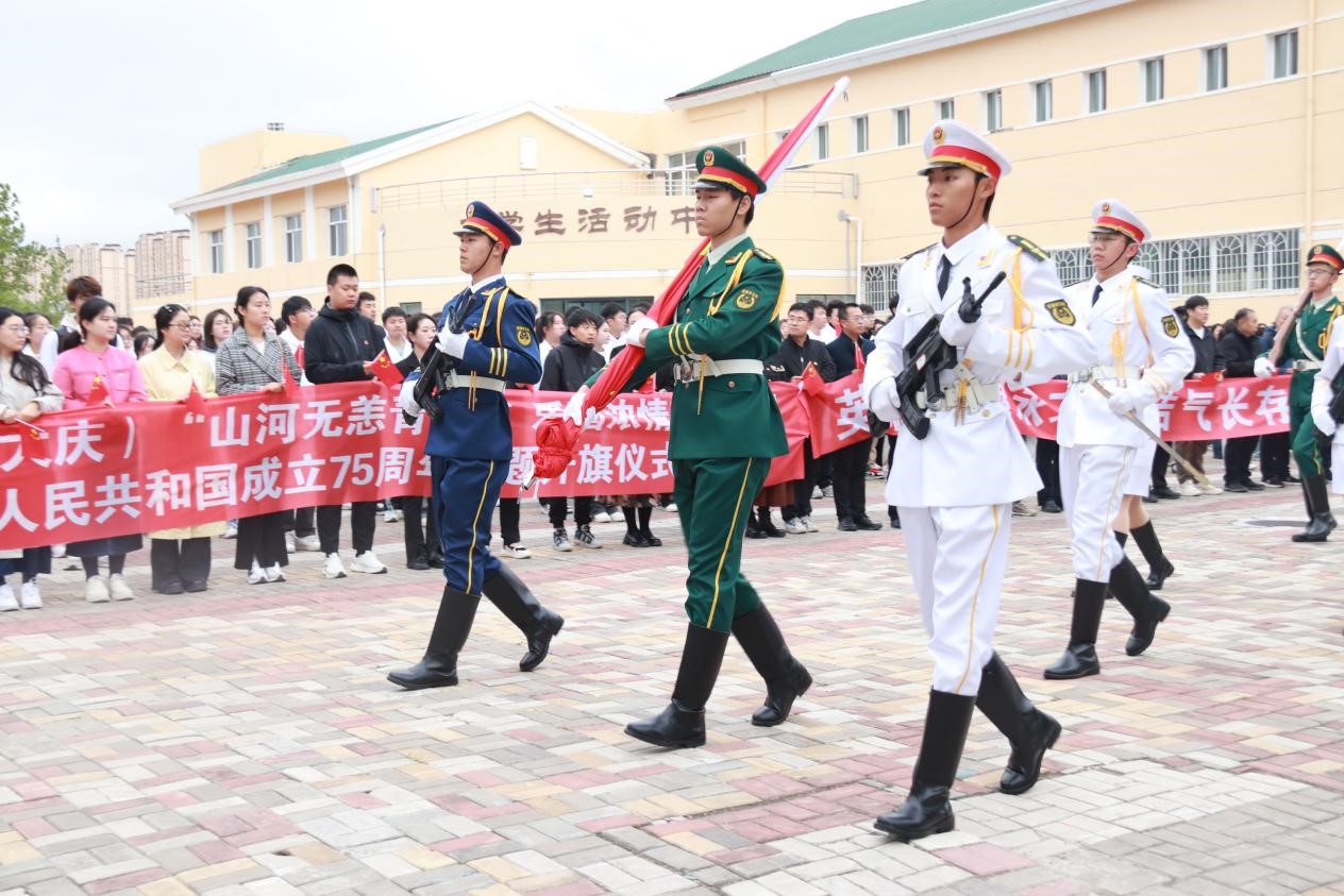 为庆祝中华人民共和国成立75周年,9月30日8时校本部与大庆校区分别在田径场和大学生活动中心广场举行升旗仪式,全校16400余名学生线上线下同时观礼。