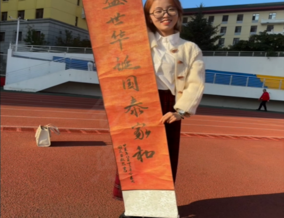 基础医学院 2024级本科(69期)学生年级以班级为单位,学生自发组织、编排节目,为祖国献礼。《我和我的祖国》《少年中国说》《我们都是追梦人》等歌曲耳熟能详,字字句句唱出了医大学子的爱国之心,表达了医大学子对肩负使命的清晰认知和对建设祖国的坚定信念。一幅幅书法作品以苍劲有力的笔触展现出豪迈气势,笔走龙蛇间,仿佛能感受到中华大地的蓬勃生机,每个字都蕴含着深厚的文化底蕴,体现书法技艺之精湛,抒发了对国家繁荣昌盛的赞美之情。