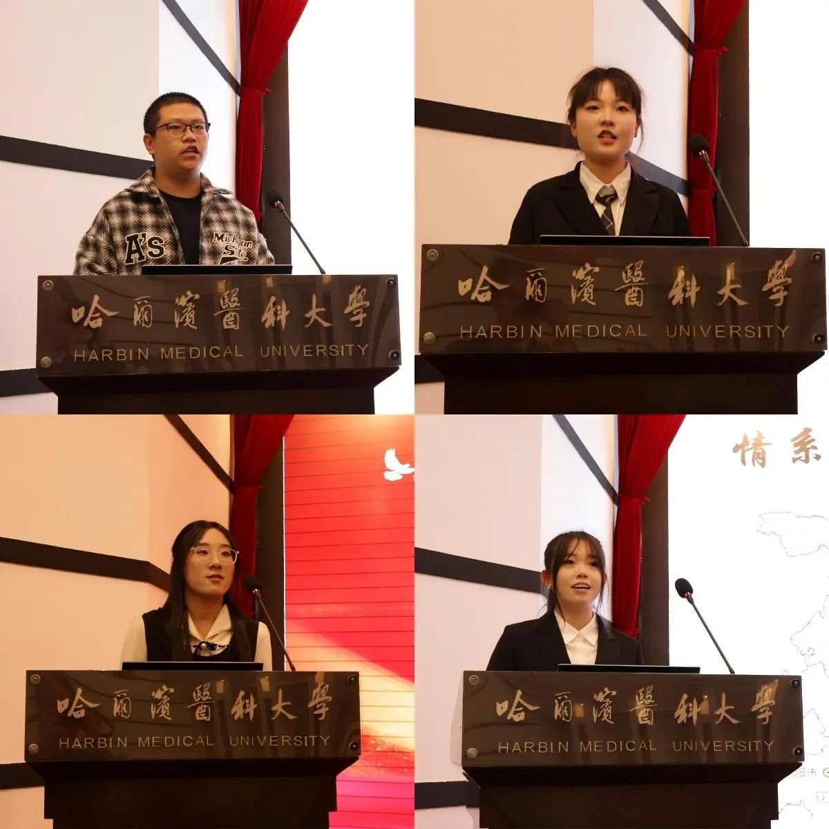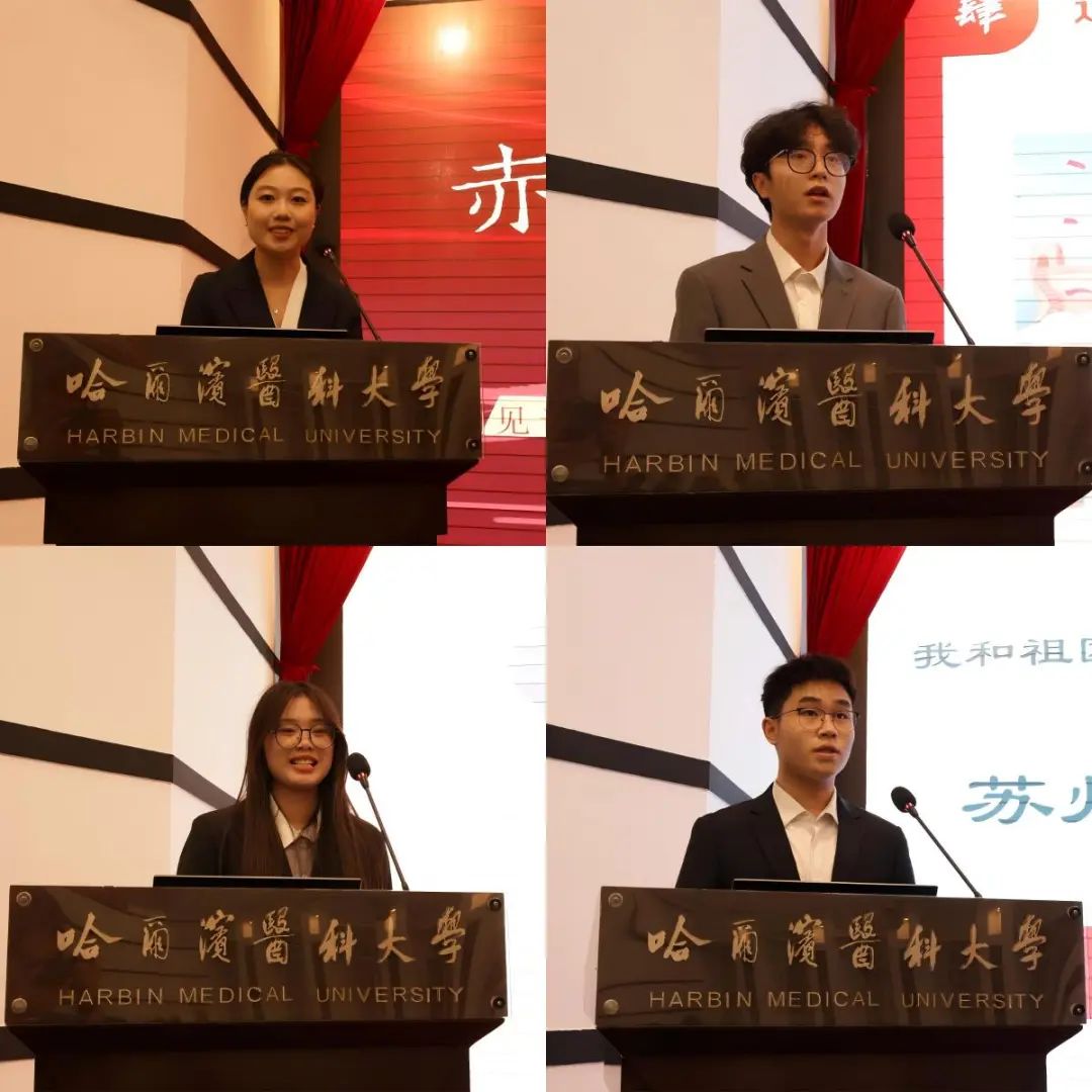 各院学生代表以个人演讲的形式,分享自己与祖国共同成长的动人故事,生动展现家乡的发展变化,尽情抒发与祖国的深厚情感,共同为伟大祖国母亲献礼。经过激烈角逐,基础医学院郭文凯、口腔医学院赖煜灵荣获一等奖;护理学院杨珍、第三临床医学院郭雨晴、第二临床医学院张琳获得二等奖;公共卫生学院马雯妍、第一临床医学院王彦臻、药学院郑思宇获得三等奖;生物信息科学与技术学院李钰霖、人文社会科学学院冯佳睿、第四临床医学院闫皓翔、卫生管理学院桂佳慧获得优秀奖。