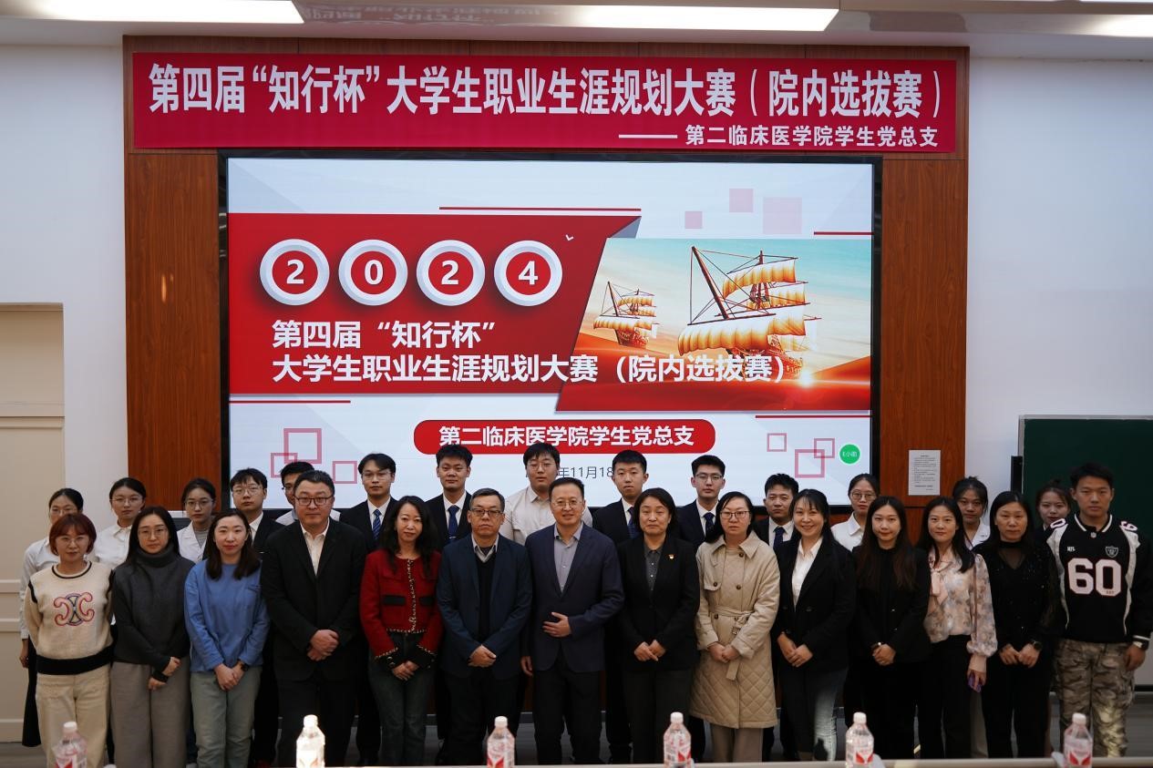 为贯彻落实党中央、国务院关于高校毕业生就业工作的决策部署,按照《教育部关于举办第二届全国大学生职业规划大赛的通知》要求,进一步推动学校生涯教育和就业指导,增强大学生职业规划意识,促进毕业生高质量充分就业,第二临床医学院于11月18日在教学楼2号教室举办第四届"知行杯" 大学生职业规划大赛院内选拔赛。ac米兰官网中文网站二院党委副书记王洪亮、ac米兰官网中文网站二院副院长吴亚军、ac米兰官网中文网站二院学生党总支书记付玉、ac米兰官网中文网站二院研究生科科长韩冰、ac米兰官网中文网站二院教务科科长张思佳、ac米兰官网中文网站二院人事科科长郑旭东、ac米兰官网中文网站二院科研科科长杨春燕、ac米兰官网中文网站二院团委副书记孙冬莹以及学生科全体辅导员老师担任评委。