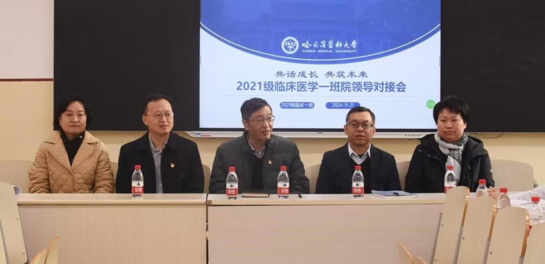 第二临床医学院 为深入贯彻落实《关于加强和改进新形势下高校思想政治工作的意见》,11月21日上午,院党委书记焦军东与2021级临床医学专业一班在教学楼举行院领导联系班级座谈会。党委副书记王洪亮、副院长吴亚军、学生党总支书记付玉及党委相关职能科室负责人陪同座谈。