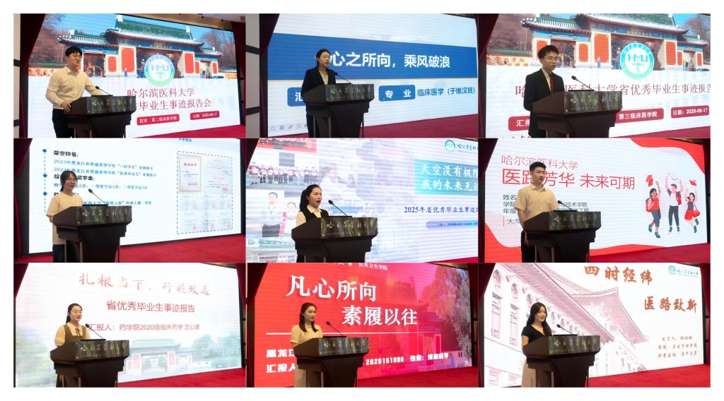 第一临床医学院王泽瑶、第二临床医学院毕世隆、第三临床医学院李家豪、第四临床医学院勾依凡、基础医学院敖新悦、生物信息科学与技术学院梁跃瀚、药学院沈心瑜、公共卫生学院朱文琢、卫生管理学院杨旺璇分别从学术钻研、工作实践、竞赛交流等多个方面,深入分享自己在大学本科阶段的宝贵经历与心得体会,鼓励学弟学妹们在学业上勤奋刻苦,珍惜大学时光,积极参加学校组织的各项活动,锤炼品格、提升素养、增强才干、练就本领,争做德智体美劳全面发展的社会主义建设者和接班人。