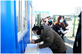 3月6日早晨8点开始,四院学生陆续返校,在工作人员的引导下,学生有序进行扫码、测温、行李消杀、身份核验等返校流程。现场的老师和志愿者们不畏寒冷,始终坚守各自的工作岗位,履职尽责,为学生做好服务保障工作。学生们回到阔别已久的校园,见到想念的老师,感受到学校无微不至的关怀,内心都充满了激动和喜悦,顿时放下了离家的忧愁和不安。风雪虽寒,人情更暖,笑在脸上,暖在心间。