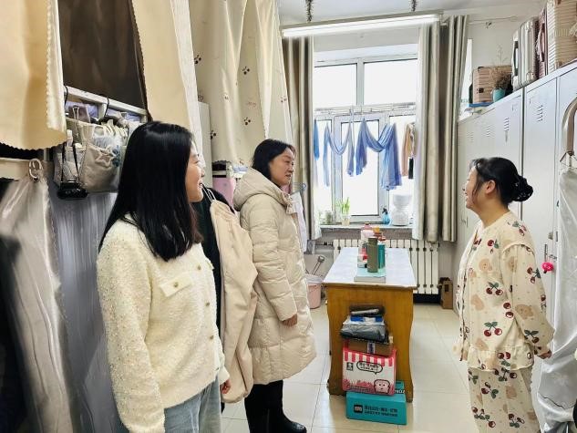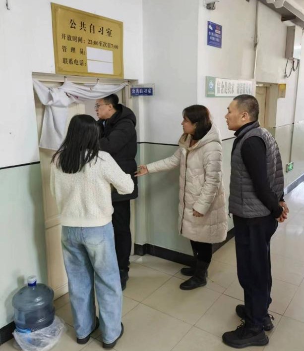 2023年12月25日上午,二院党委副书记王洪亮、学生党总支书记付玉以及学生工作部、院团委的全体老师深入学生的生活区域进行走访慰问,对学生在考期的学习和生活情况进行调查。