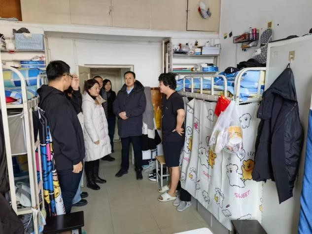 王洪亮书记一行先后走访了学生寝室、公寓自习室等学生生活区域,检查各项基础设施以及学生生活的保障情况,并与学生进行亲切交流,充分了解学生的思想与心理状况。王洪亮书记一再叮嘱同学们,在学习和生活中一定要注重人身安全、消防安全、用电安全、财产安全等安全问题的防范,安全无小事,保障自己平安健康,是家庭和学校最重视的事情。无论遇到任何困难都要及时和辅导员老师反映,学校和学院的学生工作部门一定会为同学们提供合适的解决方案。