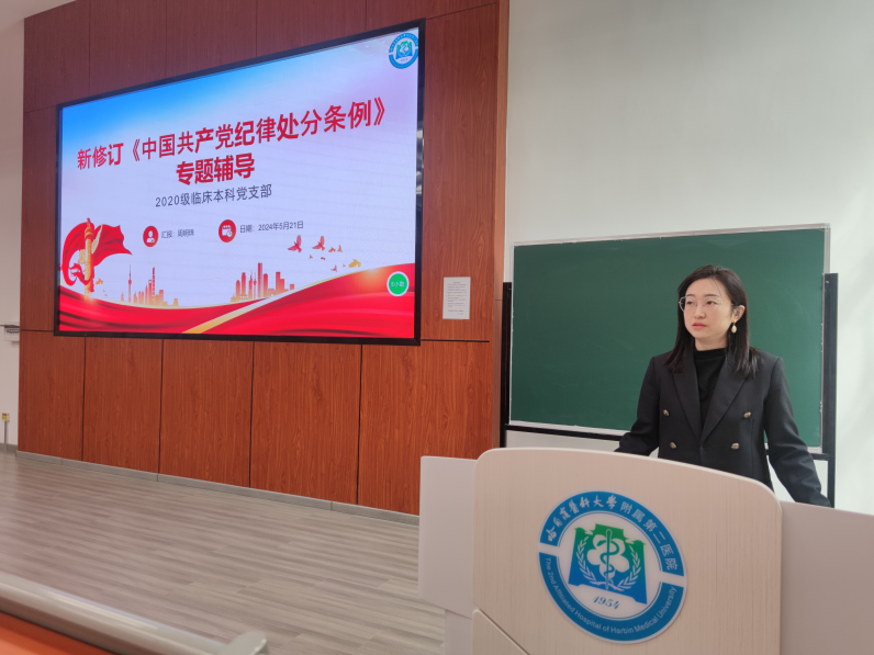 2020级临床本科党支部积极响应号召,策划了面向年级全体同学的党课活动。2024年5月21日,2020级临床本科党支部以“学纪 知纪 明纪 守纪”为主题,在第二临床医学院教学楼3号教室开展专题党课活动,支部书记周明珠主持了本次党课,年级全体党员以及各班班长和团支书参加了学习。